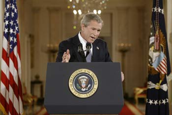 布什在講話中警告薩德爾必須解散他的武裝,并對針對他的指控做出回應(yīng)。薩德爾目前正藏身在伊拉克某地,但他不時(shí)發(fā)出信息,呼吁他的支持者抵抗美軍占領(lǐng)。