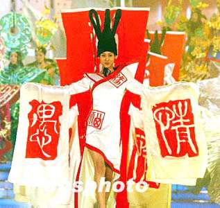 2004年4月12日晚上,在第三屆中國河南國際投資貿易洽談會開幕式大型文藝晚會上,一組根據中原歷史、歷史文物設計的時裝,給觀眾留下了深刻印象。馬健 攝
