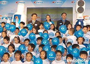 4月14日,著名口腔護(hù)理品牌Crest在香港推廣「健康牙齒 美麗笑容」宣傳活動(dòng),歌影紅星莫文蔚在活動(dòng)中率領(lǐng)眾多小學(xué)生,一同宣誓成為《Crest笑容大使》,立志保持牙齒健康。作者:鄧慶樂