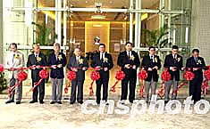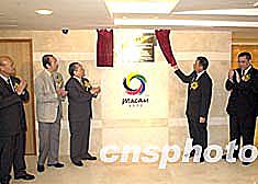 圖為澳門特區(qū)行政長官何厚鏵為「第四屆東亞運(yùn)動(dòng)會(huì)澳門組委會(huì)總部」新大樓揭牌。