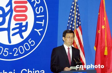 演講會由復(fù)旦大學(xué)校長王生洪主持,上海市長韓正致辭歡迎切尼副總統(tǒng)和夫人訪滬。