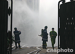 今天下午,重慶市對天原化工總廠殘存有液態(tài)氯的三個貯氣罐進行了人工引爆,三個貯氣罐目前已被摧毀,險情被排除。十五日晚重慶天原化工總廠發(fā)生氯氣泄漏爆炸事件,十五萬群眾被疏散。圖為引爆前消防員噴水降低化工總廠前空氣中的氯氣濃度。作者:鄒輝