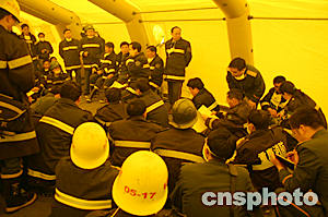 今天下午,重慶市對天原化工總廠殘存有液態(tài)氯的三個貯氣罐進行了人工引爆,三個貯氣罐目前已被摧毀,險情被排除。十五日晚重慶天原化工總廠發(fā)生氯氣泄漏爆炸事件,十五萬群眾被疏散。圖為消防官兵在洗消帳篷內(nèi)布署工作。作者:鄒輝