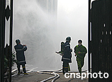 圖:重慶市武警消防總隊隊長在現(xiàn)場指揮