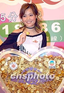 歌星容祖兒4月20日在香港出席慈善籌款晚會《明愛暖萬心》記者會,容祖兒將金幣注入心形燈箱,象征全力支持明愛籌款活動,籌款晚會將于25日晚舉行。作者:鄧慶樂