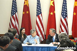 好話說盡,等到中國副總理吳儀最后致辭時,她說:“他們講得很好,我都沒什么可講的了。”雖說如此,吳副總理也講了不少。