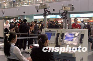 北京四月二十二日確診一例SARS疑似病例后,北京市迅速啟動相應(yīng)的SARS預警機制。二十三日,北京機場在候機大廳新啟用紅外熱成像自動搜索測溫系統(tǒng),對所有進出旅客實行嚴格的體溫測試。中新社記者:張勤