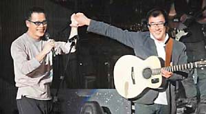 演唱會(huì)嘉賓李宗盛上臺(tái)獻(xiàn)唱《愛(ài)情有什么道理》和《愛(ài)的代價(jià)》,由于傳聞他的婚姻亮起紅燈,這兩首情歌唱來(lái)似乎非常激動(dòng),唱完后眾人給予熱烈掌聲,有歌迷高喊“李宗盛我們支持你”,他則努力擠出笑容說(shuō)“還行!”