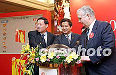 4月28日,2004-05CBA聯(lián)賽商務(wù)推介會在北京舉行,這個(gè)賽季的比賽將在賽制和招商模式上進(jìn)行重大改革:南北分區(qū)的新賽制、公開透明的招商模式、為球迷、贊助商和媒體服務(wù)。圖為籃管中心主任李元偉(左一)與嘉賓共同開啟新賽季南北雙方參賽隊(duì)伍。中新社記者:盛佳鵬