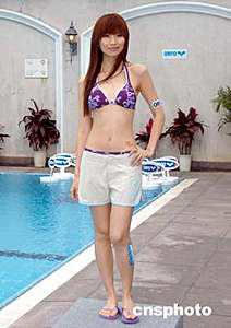 藝員黃泆潼4月29日在香港出席國(guó)際泳裝品牌Arena 04泳裝展示派對(duì),為Arena展示新款泳裝。作者:鄧慶樂
