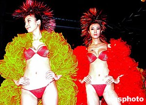 五月,著名的黛安芬內(nèi)衣公司將全面上市2004“危險(xiǎn)曲線”內(nèi)衣新品。圖中模特展示的是新品內(nèi)衣“奢華曲線”情景,這款內(nèi)衣淡淡的桃紅色內(nèi)襯著純白的刺繡蕾絲,晶扣設(shè)計(jì)搭配低胸剪裁,奢華中盡展女性的嫵媚。中新社記者:王麗南