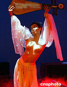 歷經(jīng)風(fēng)風(fēng)雨雨的首屆中國“人體藝術(shù)模特大賽”五月三日晚在重慶市郊一家小劇院“悄悄地”舉行,十五名經(jīng)過預(yù)賽和培訓(xùn)的男女模特參加歷時(shí)倆個(gè)小時(shí)的比賽,女模特用不全裸的“中國方式”表演中國舞蹈“飛天”,盡情展示人體之美。中新社記者:任晨鳴