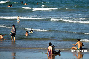 黃金周頭三天,海南每天艷陽(yáng)高照,最高氣溫達(dá)到35度左右,許多游客紛紛來(lái)到海濱享受日光浴和海水浴。蒙鐘德 攝