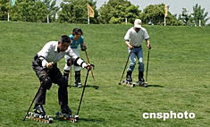 “五一”黃金周期間,一種在歐美風(fēng)行的健身運動——“滑草”開始在江蘇蘇州流行。在無緣滑雪的南方地區(qū),“草上飛”的感覺不亞于北方滑雪的樂趣。作者:蔣振江