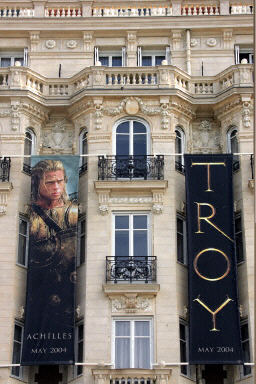 戛納電影節(jié)擁有世界上最大的電影交易市場(chǎng),其影片成交額比其他全部電影節(jié)的交易量加起來(lái)還要多,所以海濱大道上的戶(hù)外廣告位是各大電影發(fā)行公司必爭(zhēng)之地,和去年《黑客帝國(guó)》鋪天蓋地的宣傳攻勢(shì)相比,目前還沒(méi)有任何一部影片能與其媲美。除了《壞教育》、《殺死比爾》、《特洛伊》少數(shù)幾部電影之外,相當(dāng)數(shù)量的廣告位還在張貼著影展的官方海報(bào)。到記者發(fā)稿為止,街上多是載重貨車(chē),卷成一捆捆的巨幅宣傳海報(bào)在兩三天之后將會(huì)把整條海濱大道裝點(diǎn)成一個(gè)露天電影市場(chǎng)。