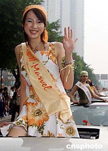 參加第十六屆世界模特小姐總決賽的世界各國(guó)參賽佳麗,五月十三日來(lái)到廣州進(jìn)行慈善巡游活動(dòng)。作者:史一博