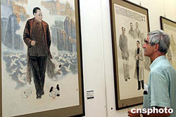 紀(jì)念鄧小平誕辰一百周年殷培華畫展八月二十日在中國美術(shù)館隆重舉行,著名軍旅畫家殷培華描繪小平輝煌而偉大一生的繪畫作品吸引觀眾。這是一位外國觀眾在認(rèn)真觀賞作品《千年宏圖》。中新社記者:張勤
