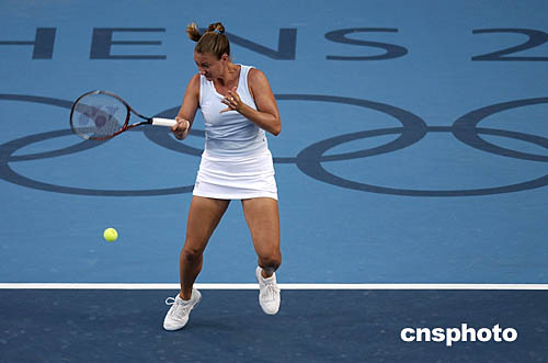 圖為法國選手皮爾斯在當(dāng)?shù)貢r(shí)間8月19日舉行的女子網(wǎng)球賽中對(duì)決比利時(shí)選手海寧。