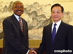 中新社北京八月二十日電 中國國務院總理溫家寶今天在中南海會見了來訪的利比里亞外交部長尼梅利,雙方就發(fā)展中利關系等問題交換了意見。