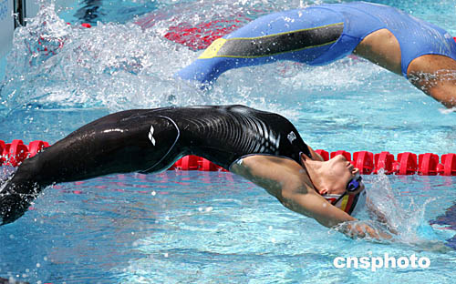 圖為在當(dāng)?shù)貢r間8月19日舉行的女子200米仰泳比賽中選手們的精彩表現(xiàn)。