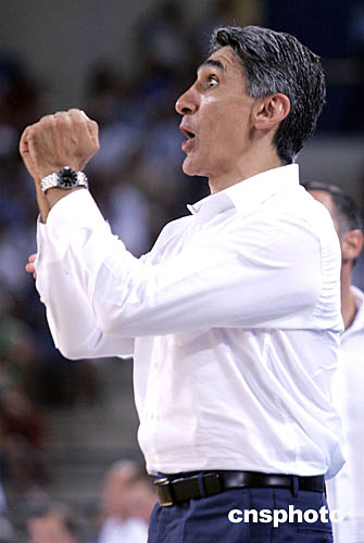 在當(dāng)?shù)貢r(shí)間8月19日舉行的希臘與立陶宛的籃球比賽中,希臘隊(duì)主教練Panagiotis Giannakis不時(shí)為隊(duì)員精彩表現(xiàn)而歡呼。