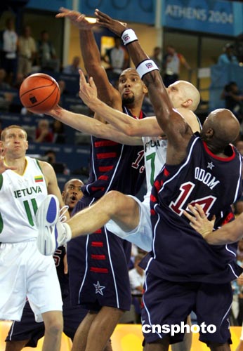 進(jìn)入第四節(jié),夢(mèng)六隊(duì)依然沒(méi)有將立陶宛的神準(zhǔn)遠(yuǎn)投放在心上。立陶宛后衛(wèi)賈斯科維修斯在第四節(jié)末段神奇地投入三個(gè)三分球,使球隊(duì)追平并反超六分。盡管夢(mèng)六隊(duì)此時(shí)如夢(mèng)方醒,但他們的反撲已為時(shí)過(guò)晚,最后不得不接受雅典奧運(yùn)的第二場(chǎng)失敗。至此,美國(guó)隊(duì)小組賽的成績(jī)?yōu)槎⻊俣?fù)。