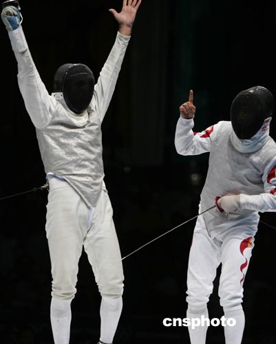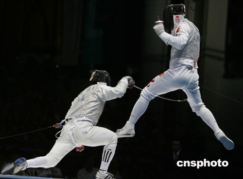 當(dāng)?shù)貢r間8月21日晚,由葉沖、董兆致、吳漢雄組成的中國男子花劍隊經(jīng)過近兩個小時激戰(zhàn),以42比45惜敗于意大利隊,獲得花劍團(tuán)體亞軍。中新社記者:任晨鳴