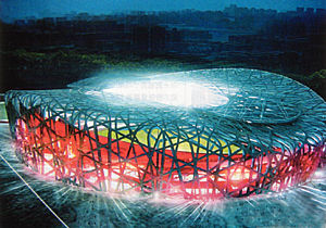此時(shí),作為2008年北京奧運(yùn)會(huì)主會(huì)場(chǎng)的國家體育場(chǎng),已在京北破土動(dòng)工7個(gè)月,有1800多根長38.3米、直徑近1米的樁已被打入地下,按原來的計(jì)劃,到2006年底,這里將搭建出一個(gè)巨大的白色“鳥巢”。