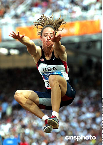 圖為在當?shù)貢r間8月21日舉行的女子七項全能跳遠項目比賽中,蒂法內-洛特-霍甘(Tiffany Lott-Hogan)的出色表現(xiàn)。