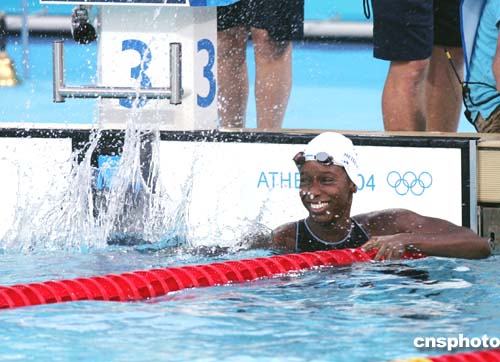 圖為在當?shù)貢r間21日進行的女子自由泳50米決賽中奪得亞軍的法國選手梅特拉。