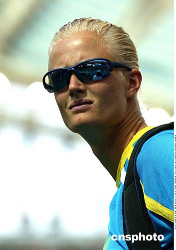圖為瑞典名將克魯夫特(Kluft Carolina)參加比賽時(shí)的照片。最后他榮獲女子七項(xiàng)全能賽冠軍。