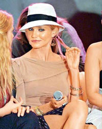 女主角自然是換了張面孔,比未來新郎大8歲的臉雖然美艷動人,卻也不免讓人心頭為之一顫:卡梅倫·迪亞茲的魅力,真的能把賈斯汀綁在身邊一生一世?好在當事人還沒有考慮得如此深遠,準新娘目前的心愿只有一個:在這個平安夜,以一個“灰姑娘”的裝扮走入“圍城”。