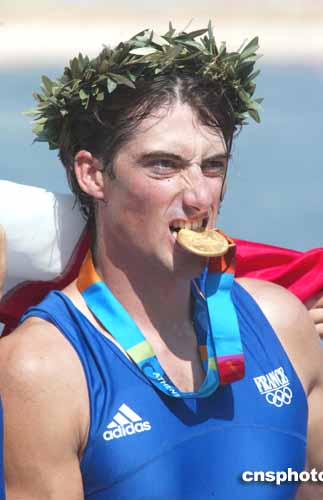 在當(dāng)?shù)貢r間21日舉行的男子賽艇雙人雙槳比賽中,法國選手安德恩-哈蒂與隊友賽巴斯蒂安-威勒登特一起取得金牌。