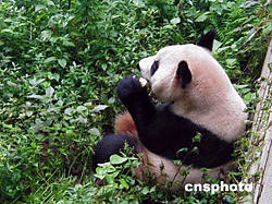 二00四年六月下旬從日本回到故鄉(xiāng)的大熊貓“彬彬”經(jīng)過兩個(gè)月的檢疫后,于八月二十三日在成都大熊貓繁育研究基地離開檢疫館住進(jìn)它的仿生獸舍,開始與游人見面。作者:魯彥