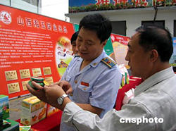 開展保護注冊商標專用權整治行動,是中國國務院今年工作要點的一項重要內容,也是全國工商系統(tǒng)今年整頓規(guī)范市場和經濟秩序的重點之一。山西工商系統(tǒng)集中開展了查處涉外商標案件及食品、藥品商標案件。圖為在八月二十三日召開的“打商標侵權,保知識產權”現(xiàn)場會議上,榆次工商系統(tǒng)執(zhí)法人員介紹受到工商部門保護的地方著名商標及名優(yōu)產品。作者:張云