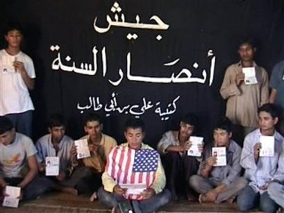 一個伊拉克武裝組織20日在網(wǎng)站上發(fā)表聲明說,他們綁架了12名為駐伊美軍工作的尼泊爾人。這個伊拉克武裝組織自稱是‘安薩爾伊斯蘭教義軍’。當(dāng)時的報道稱,被綁架的12人屬于約旦的一家公司。