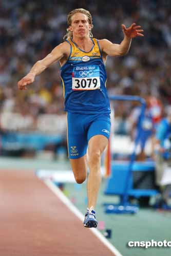 在當?shù)貢r間22日進行的男子三級跳遠決賽中,瑞典選手奧爾森獲得金牌。
