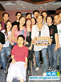 而席上有一名跟隨阿倫多年的女歌迷,由于她患了先天性痙攣,一班歌迷會(huì)成員平日都自發(fā)性照顧她,最近更與阿倫發(fā)起捐錢(qián)買(mǎi)一部電動(dòng)輪椅給她,但這位歌迷堅(jiān)持自己也要出一份錢(qián),此事令阿倫很感動(dòng)。阿倫表示,這位歌迷的事件,正好告訴大家,凡事都有希望,只要抱樂(lè)觀心情,問(wèn)題自會(huì)解決。