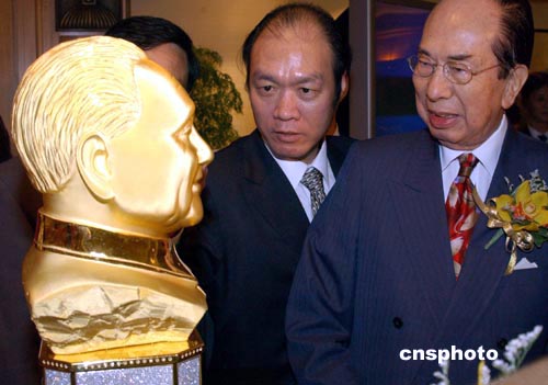 為紀念世紀偉人、中國改革開放的總設(shè)計師鄧小平先生百年誕辰,“金至尊”特別動員三十多人精心鑄造“鄧小平金至尊美鉆金像”,八月二十四日在香港舉行揭幕儀式,該像以2.8公斤黃金,5000顆總重量達100卡拉鉆石鑄造而成,總價值超過港幣一百萬。作者:錢興強