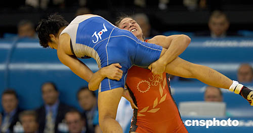 圖為在當(dāng)?shù)貢r(shí)間8月23日舉行的女子72公斤級(jí)比賽中,日本選手KAORI ICHO以3比2戰(zhàn)勝美國(guó)選手SARA MCMANN奪得冠軍。圖為她們?cè)诒荣愔械膱?chǎng)面。