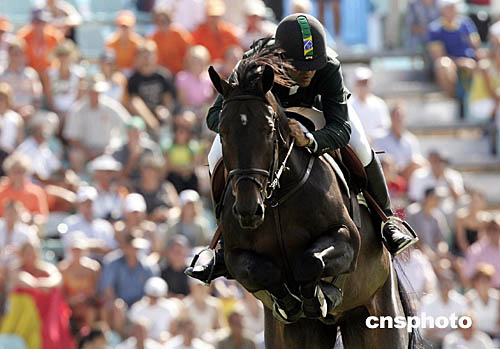 圖為巴西選手Alvaro Miranda Neto在當(dāng)?shù)貢r(shí)間8月24日舉行的男子馬術(shù)團(tuán)體場(chǎng)地障礙賽中的精彩表現(xiàn)。