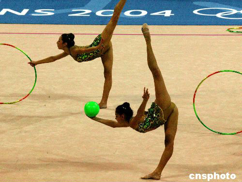 巴西藝術(shù)體操隊(duì)八月二十四日在雅典進(jìn)行賽前排練。中新社記者:王瑤