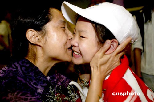 中新社北京八月二十六日電 (記者高凱李靜)首都國際機(jī)場今天再度沸騰,二百二十四名中國奧運(yùn)健兒上午九時(shí)乘坐專機(jī)從雅典返京。
