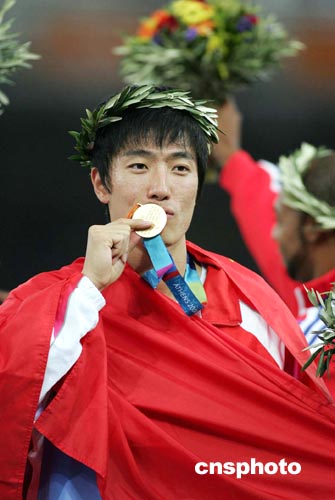 劉翔在雅典奧運(yùn)會(huì)上奪得一百一十米欄金牌,這是亞洲人在奧運(yùn)會(huì)男子跨欄項(xiàng)目有史以來(lái)的第一塊金牌,這一天也是中國(guó)田徑實(shí)現(xiàn)歷史性突破的一天。同時(shí),他打破長(zhǎng)期由黑人和白人選手在短距離徑賽項(xiàng)目上的壟斷,也為亞洲人揚(yáng)眉吐氣。難怪有美國(guó)媒體奧運(yùn)會(huì)前就大膽預(yù)測(cè):劉翔是繼效力于NBA休斯敦火箭隊(duì)的姚明之后,中國(guó)又一個(gè)最受歡迎的運(yùn)動(dòng)員。