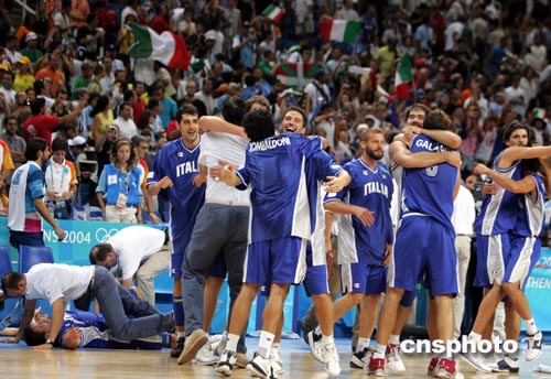| 當(dāng)?shù)貢r間8月27日晚,進(jìn)入雅典奧運(yùn)會男籃半決賽的四只球隊捉對廝殺。不可一世大有非冠軍莫屬的立陶宛眾球星,遇上更加神勇的意大利隊。雙方在快攻中展開三分球大戰(zhàn),結(jié)果以三分球準(zhǔn)確而著名的立陶宛35投僅15中,意大利卻28投18中。意大利5號BASILE投中11個三分球,砍下全場最高分31分。意大利終以100比91擊敗立陶宛晉級決賽,而決賽的對手是淘汰美國“夢六隊”的阿根廷隊。中新社記者:任晨鳴