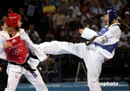 中新社雅典八月二十八日電 二十一歲的北京姑娘羅微今天在雅典奧運(yùn)會(huì)女子跆拳道六十七公斤級(jí)決賽中,以八比六戰(zhàn)勝東道主選手米斯塔基多,為中國代表拿下改寫奧運(yùn)最好成績的第二十九枚金牌。