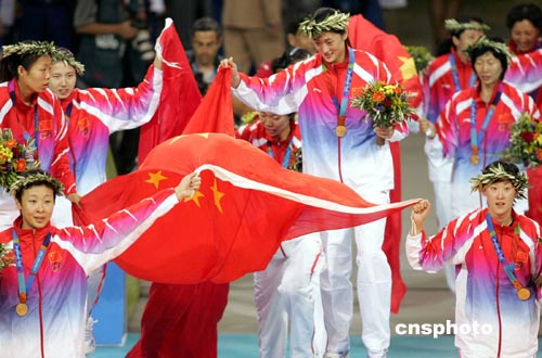 中新社雅典八月二十八日電 今天可謂中國(guó)代表團(tuán)的又一個(gè)“豐收日”,在女排、皮劃艇、跆拳道和跳水四個(gè)沖金點(diǎn)上中國(guó)奧運(yùn)健兒無一漏網(wǎng),將金牌全部收入囊中,使中國(guó)軍團(tuán)在本屆奧運(yùn)會(huì)上的金牌數(shù)達(dá)到了三十一枚,在雅典奧運(yùn)會(huì)即將結(jié)束之時(shí),已基本能夠保持住獎(jiǎng)牌榜第二的位置,創(chuàng)造了歷史最好成績(jī)。