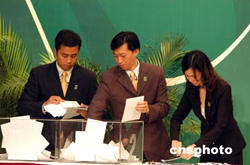 澳門舉行第二任特首選舉工作人員在認真點票