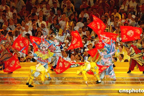 當(dāng)?shù)貢r(shí)間29日,在雅典奧林匹克運(yùn)動(dòng)場(chǎng)舉行的閉幕式上,中國(guó)舞蹈有精彩表現(xiàn)。