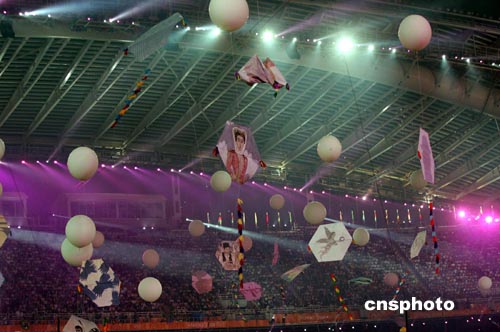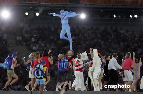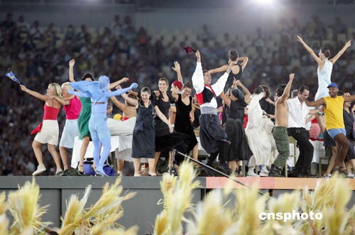 當?shù)貢r間八月二十九日,第二十八屆奧林匹克運動會在雅典圓滿結(jié)束。圖為閉幕式上的文藝表演。中新社記者:毛建軍
